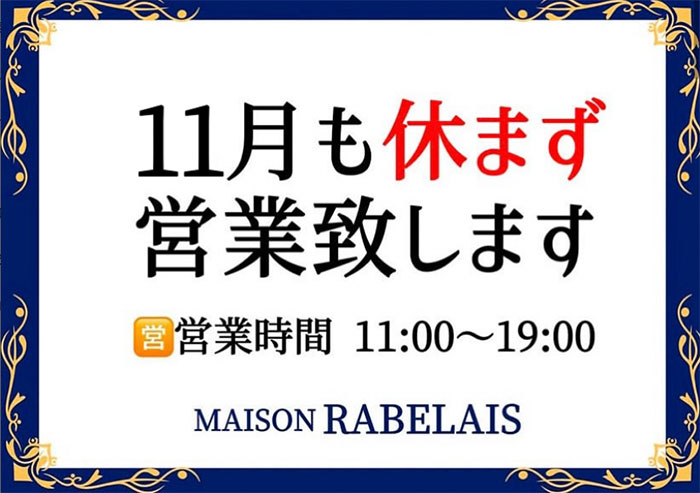 営業時間/11:00AM〜7:00PM