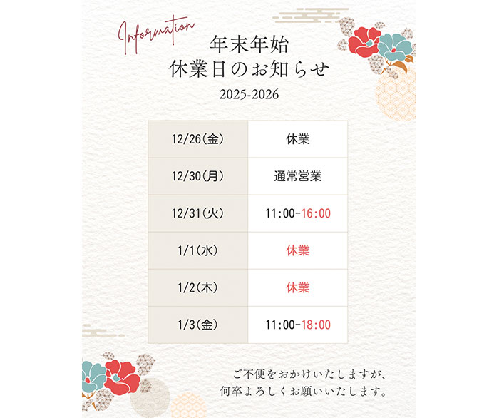 営業時間/11:00AM〜7:00PM